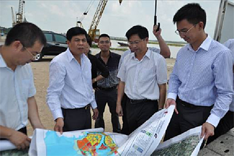 陳春良副主席(左二)與欽州市副市長陸欽華(右二)進(jìn)行選址探討