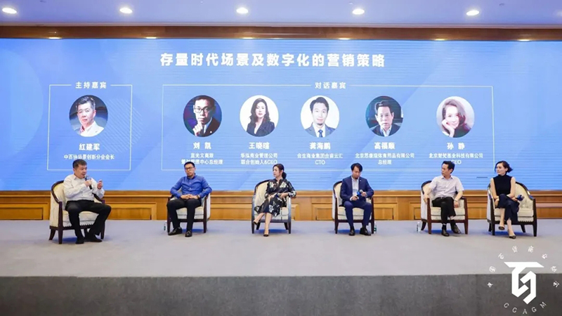 中百協(xié)場景創(chuàng)新分會(huì)會(huì)長紅建軍主持對話,對話題目為“存量時(shí)代場景及數(shù)字化的營銷策略”,藍(lán)光文商旅策劃管理中心總經(jīng)理劉凱 、華泓商業(yè)管理公司聯(lián)合創(chuàng)始人&CEO王曉暄、合生商業(yè)集團(tuán)合商云匯CTO龔海鵬、北京思康瑞體育用品有限公司總經(jīng)理高福順、北京楚梵基業(yè)科技有限公司CEO孫靜作為嘉賓參加分享。