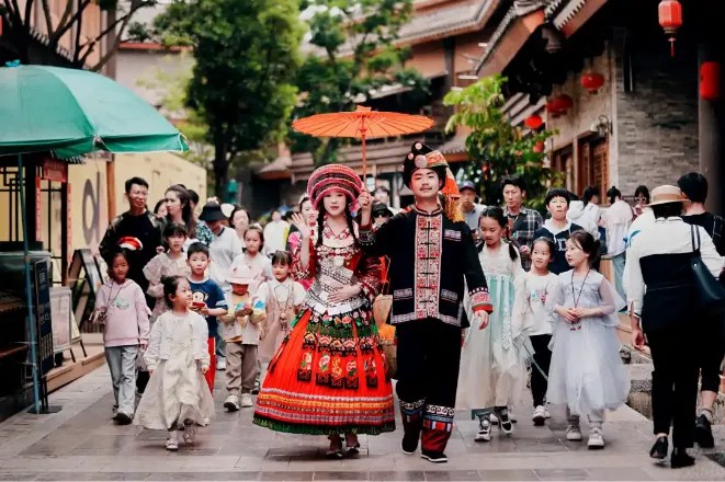 據(jù)悉,“阿詩夢”產(chǎn)品線以云南特色民族民間文化為核心,旨在為外地游客提供沉浸式體驗(yàn)。在場景創(chuàng)新層面,滇池后海打造了具有云南民族特色的街區(qū),如白族三坊一照壁、傣族竹樓、苗族風(fēng)雨橋等,還定期舉行民族舞蹈、音樂表演。與此同時(shí),項(xiàng)目通過與當(dāng)?shù)厮囆g(shù)家、設(shè)計(jì)師的合作,推出了一系列具有云南特色的文創(chuàng)產(chǎn)品,如千言李白原創(chuàng)IP系列產(chǎn)品、非遺瓦貓等。在科技應(yīng)用上,項(xiàng)目也不斷探索和創(chuàng)新。通過引入會員系統(tǒng)、客流監(jiān)控系統(tǒng)、移動支付、在線預(yù)訂等科技手段,提高了商業(yè)街區(qū)的運(yùn)營效率和游客的消費(fèi)體驗(yàn)。