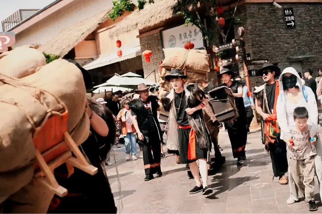 在傳統(tǒng)文化挖掘方面,以舜帝廟頌揚(yáng)“孝舜文化”,金家大院戲臺再現(xiàn)濟(jì)南“曲山藝海”盛世景象,每日進(jìn)行的京劇演出讓戲曲文化融入街區(qū)氛圍、孟洛川旗袍及非遺展銷中心等工藝品店再次引領(lǐng)中國傳統(tǒng)匠人精神新高度。“漢式婚典”“拜月儀式”“祭舜大典”等傳統(tǒng)儀式,為數(shù)以萬計(jì)的游客呈現(xiàn)傳統(tǒng)國學(xué)文化的瑰寶。
