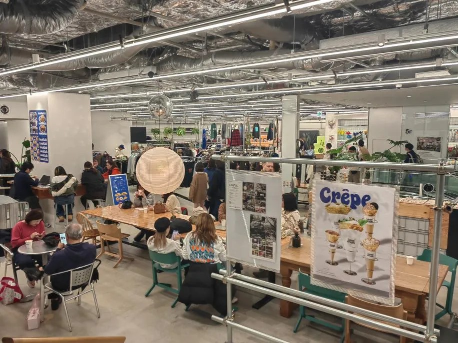 在東京的一座Tokyu Plaza中,就見到其舍棄半層經(jīng)營面積,打造出公共休閑空間。當然,所謂“舍棄”也并非完全屏蔽零售商品售賣,只是有取舍地將更能豐富消費者游逛體驗的特定零售品類包羅其中。這些商品或品牌的陳列更像是美陳道具,沒有出跳的展柜與收銀臺,總能讓進場顧客在不經(jīng)意間隨手拿起挑選。