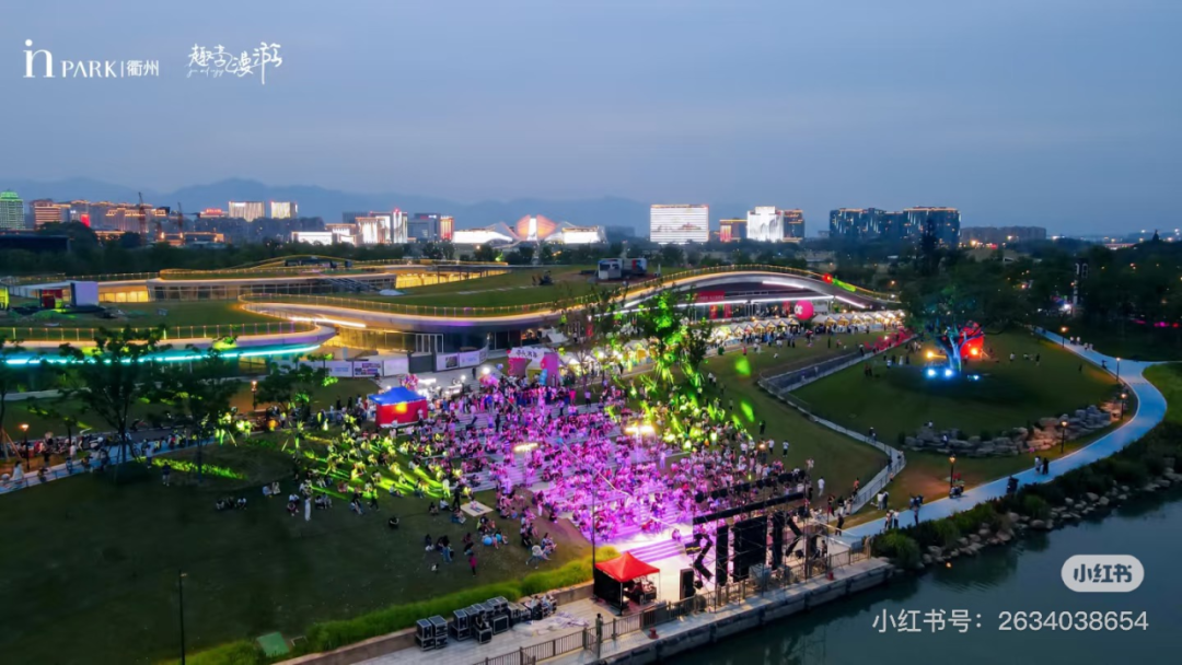 衢州鹿鳴島銀泰inPARK通過"雙層立體空間+六大公園場景"的創(chuàng)新布局,將11.6萬㎡商業(yè)體量與17萬㎡西區(qū)大草原有機(jī)融合。項目以響Livehouse、魅KTV為代表的夜間業(yè)態(tài)矩陣,配合星空電影、燭光音樂會等沉浸式活動,構(gòu)建起"山間白晝,地下不夜"的24小時活力商圈。